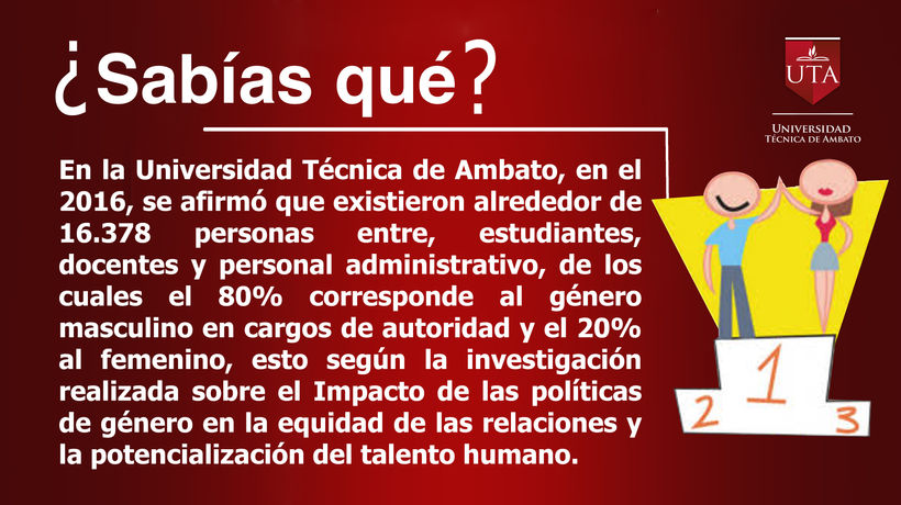 Un estudio de la Facultad de Contabilidad y Auditoria de la Universidad Técnica de Ambato sobre la igualdad de oportunidades entre hombres y mujeres en el mercado laboral demuestra la vulnerabilidad del género femenino ante el grupo masculino. Conoce más acerca del tema en el siguiente audio.